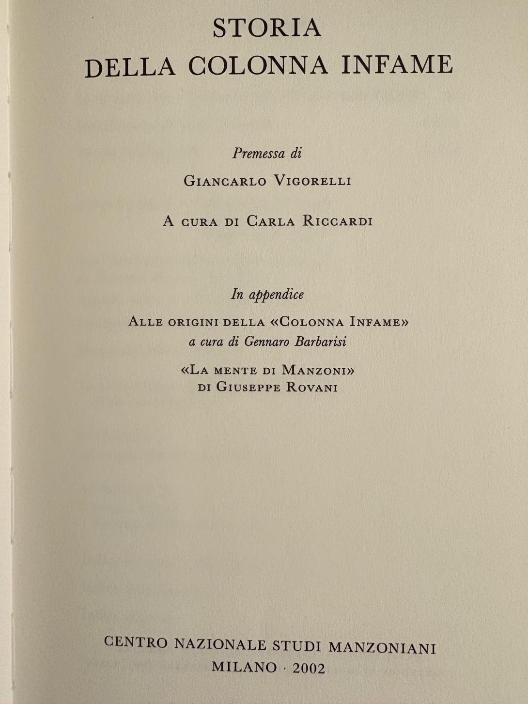 Alle origini della "Colonna Infame" a cura di Gennaro Barbarisi;