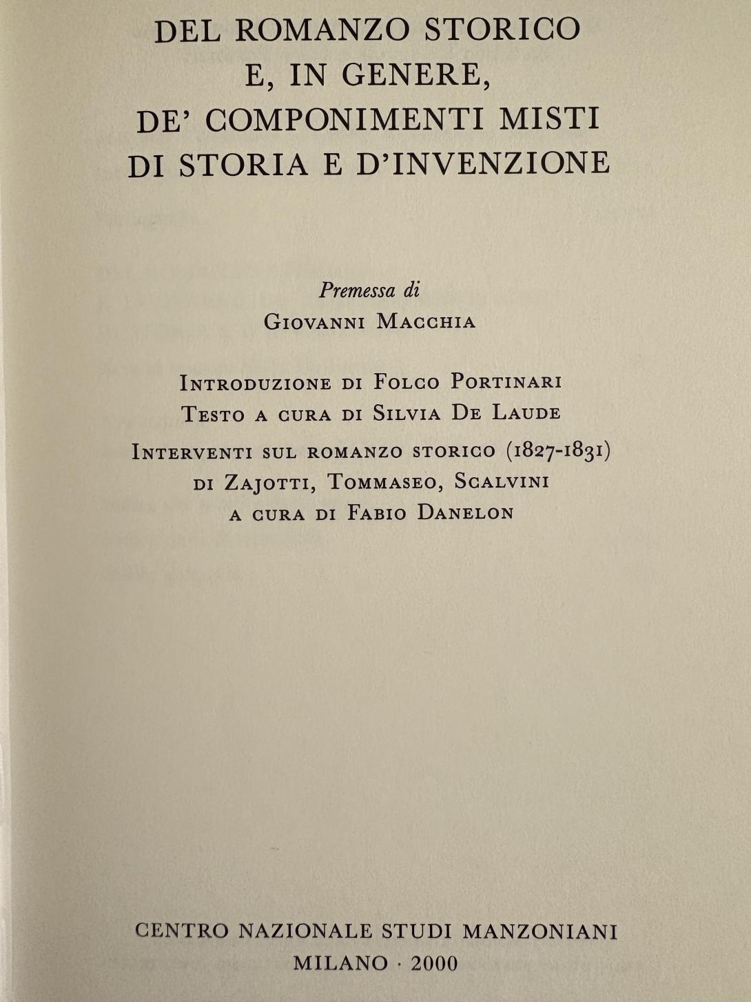 Interventi sul romanzo storico (1827-1831) di Zajotti, Tommaseo, Scalvini