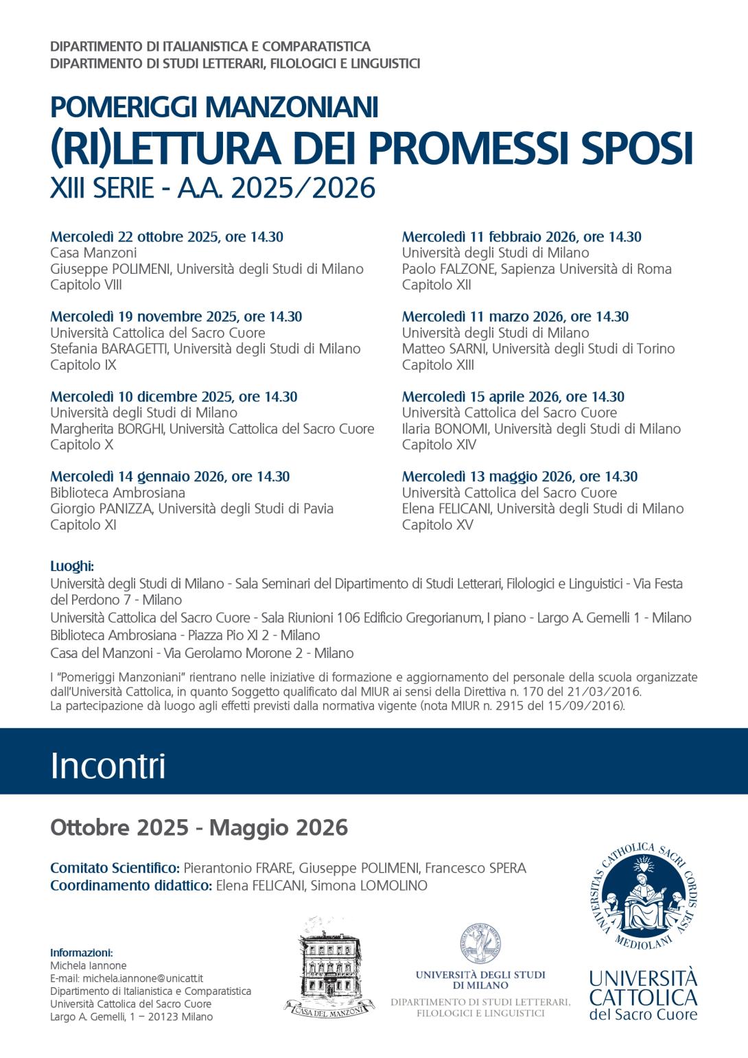 Primo incontro della XIII serie dei Pomeriggi Manzoniani